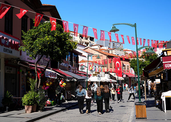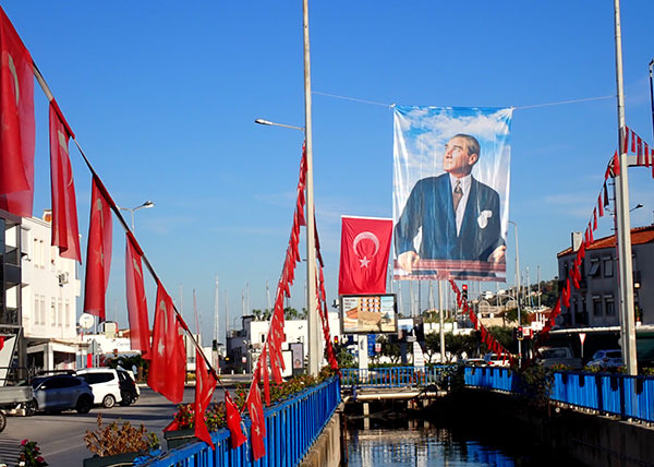 祝日でそこかしこにトルコ国旗と