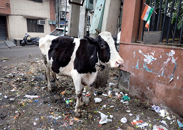 ここにもノラ牛が・・・ノラなのでごみ溜めでお食事中 お腹大丈夫?
