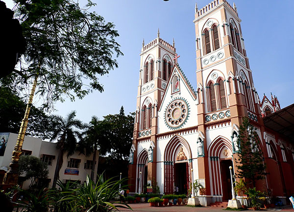 ポンティシェリのランドマーク、駅前のセクレッド・ハート・バシリカ。